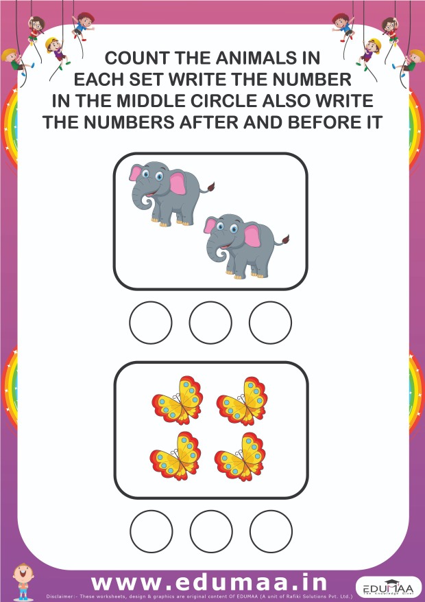 3) Writing numbers and concept of more or less.